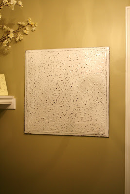 I forgot to take a before picture of this tin. But it was dark brown and used to be in my bathroom upstairs. I knew I wanted one that was white... so ta-da... a little white spray paint, and it looks new!