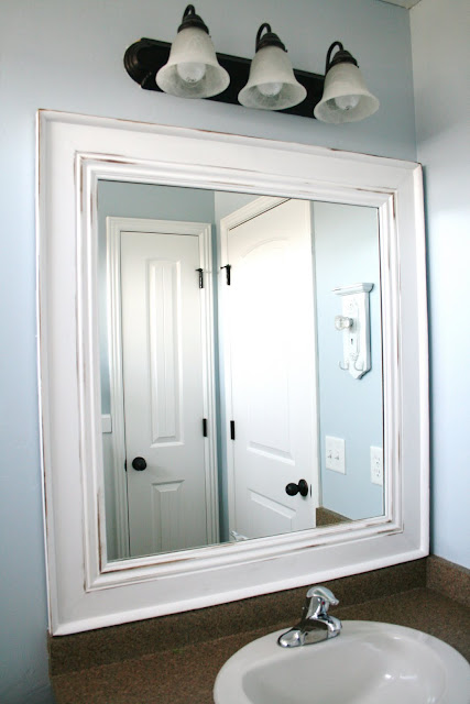 ReplyDeleteOh my gracious! It's GORGEOUS! I'm dying to do this in out bathrooms. We have those ugly big ole mirrors. Thanks for sharing. Now if I could just learn to use a saw!