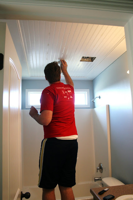 This has got to be my MOST favorite project that we have done to date. I LOVE the way it turned out. I've gotten lots of emails about this bathroom ceiling... so here ya go!